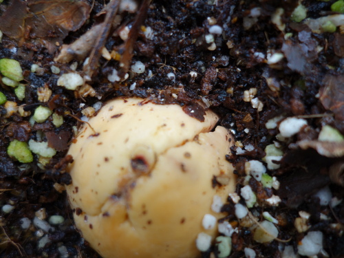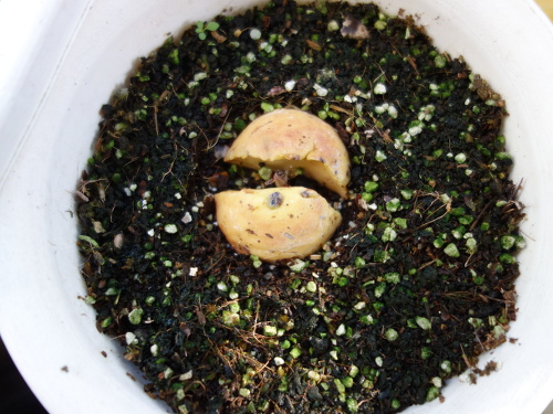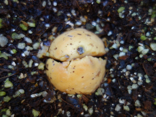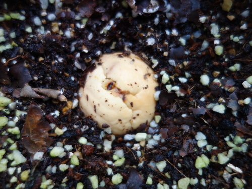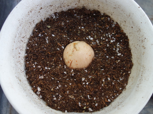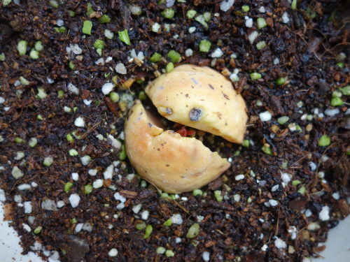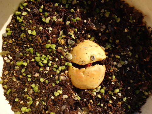 割れ目がかなり広がってきました。奥の方に芽のようなものが確認できますが、写真には撮れませんでした。