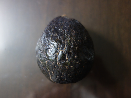 このアボカドはメキシコ産となっています。そんなに大きくなく、熟成が進むと黒くなってきました。割ってみると、種が丸く、大きめで、皮は剥がれやすかったです。もともとひび割れていたからだと思います。用いたアボカドの中ではけっこう変わり種なので、ぜひ実生で育ててみたい、発芽してほしい種の1つです。
