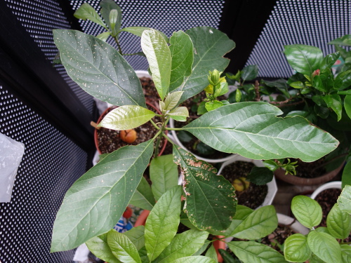 この実生苗は葉っぱが大きくて、日光が当たると輝いて見えるので、観葉植物として私は気に入っています。