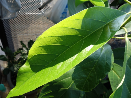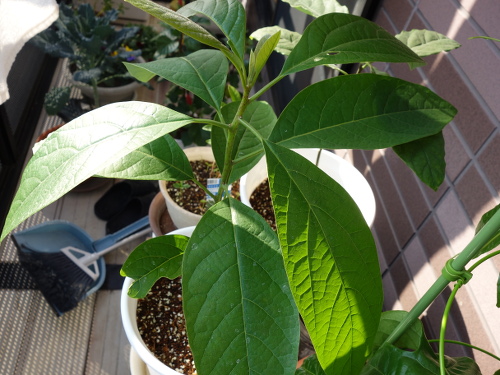 葉っぱが大きくなりました。このアボカドはペルー産でしたが、メキシコ産のNo.1やNo.2の葉っぱとはちょっと違っています。違う品種であってくれればいいのですが、そうでなかったとしても少し違えば開花のタイミングもずれるかもしれないので、Aタイプだけでも授粉(受粉)がうまくいくかもしれないと期待してしまいます。