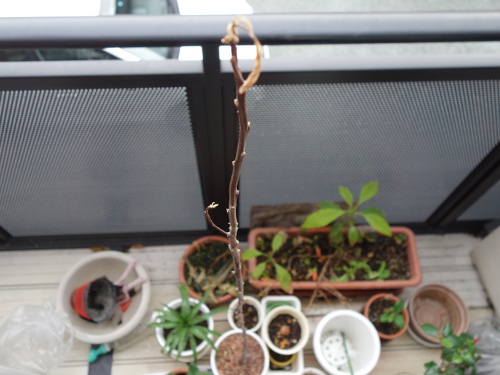 上から下まで緑色は消えて褐色になりました。冬の寒さで枯れました。