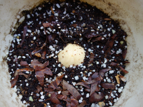 2016年10月28日午後、ついに割れ目の中に芽があるのが確認できました。午後には表面に出てきました。