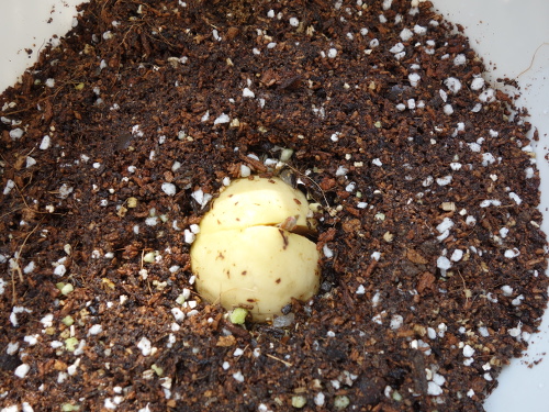 トップページ > 熱帯果樹の最短収穫 > アボカドの形と表面の観察 > アボカドの種の観察と播種 > アボカドNo.8の実生栽培