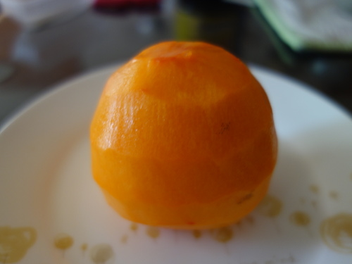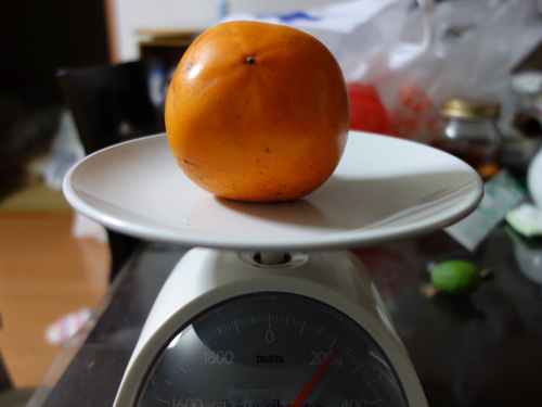 トップページ > 果樹の栽培記録 > 柿 > 2016年は豊作だった名前のわからない大きな柿 > 220gの柿の追熟と賞味
