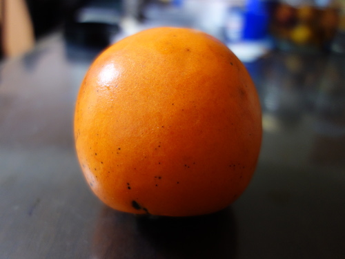 トップページ > 果樹の栽培記録 > 柿 > 2016年は豊作だった名前のわからない大きな柿 > 3番目に大きい290gの柿の追熟と賞味