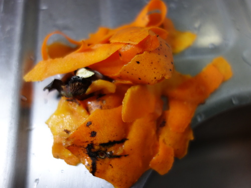 包丁で皮をきれいに剝きました。
