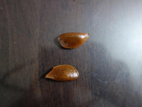 種は2個しか入っていませんでした。でも、果肉はとても甘くて美味しかったです。種はプランターに蒔きました。
