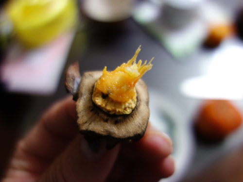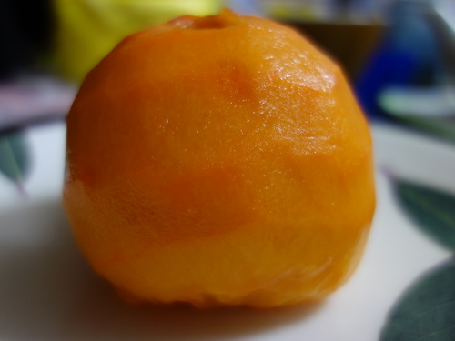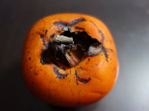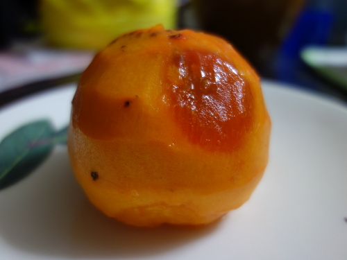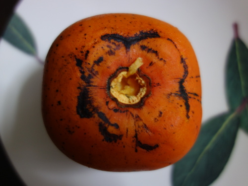 蔕(へた)の部分をゆっくりと引っ張って取り外しました。うちで採れる富有柿と違って黒くなっていなくてきれいです。