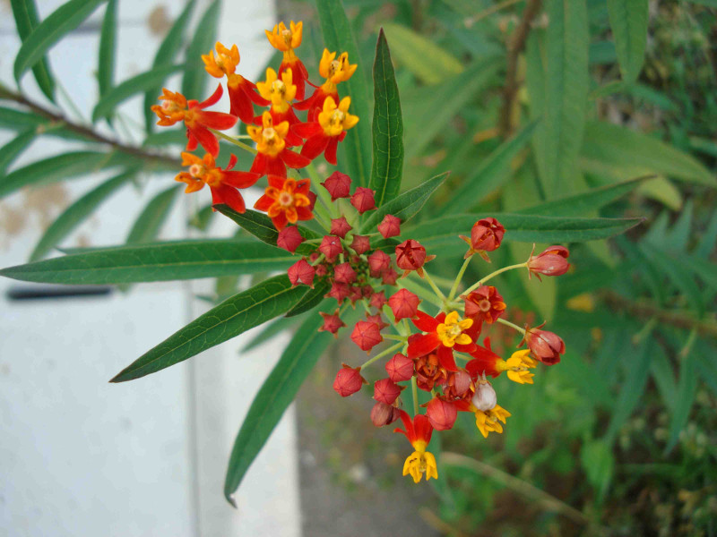 8月21日(月)夕方、近くの公園にウォーキングに出掛けました。すると、道端に名前のわからないきれいな花が咲いているのを見つけました。あまりに印象的だったので写真に収めました。この花の名前をあとでインターネットの花の図鑑で調べたらトウワタ(唐綿)という花でした。英語ではBlood Flower というそうです。わかる気がします。