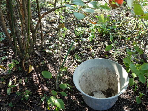 これまで様子を見てきた結果、地植えではだめなようです。そこで、完全に枯れてしまう前に土を変えて鉢植えで栽培してみることにしました。畑で掘り起こしてみたら、根があまり張っていませんでした。これでは育たないはずだと妙に納得しました。鉢に鹿沼度土に相当するゴールドソィールを入れて、その上から花と野菜の培養土を入れて、畑から掘り起こした苗を埋めました。そして、地植えしていた場所にはブルーシャワーを植えました。ブルーシャワーはサザンハイブッシュ系なので、地植えでも育つと思います。なぜならば、ほかのサザンハイブッシュ系はすべて育ったからです。