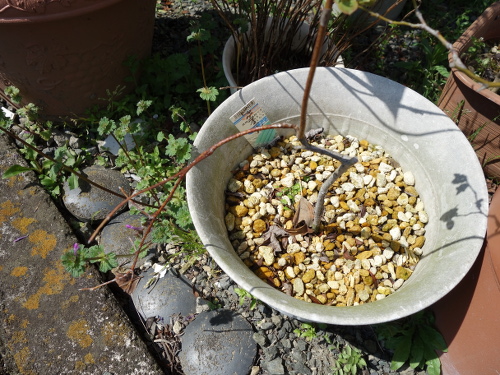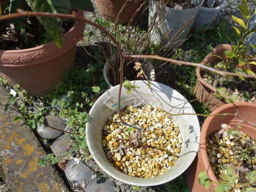 同時に鉢植えに戻したシャープブルーとは異なり、こちらは復活とはいえない状況です。葉っぱも出てきていません。ただ、幹の色を見ると、まだ枯れたわけではなさそうです。このまま様子を見ていきます。