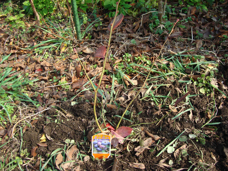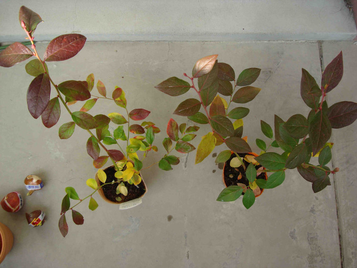 クーパーというブルーベリーの苗木(右)とビッグオニールというブルーベリーの苗木(左)(2012年12月8日)