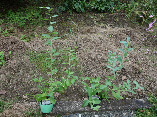 ブルーベリー グロリア(右)とパウダーブルー(左)の苗木