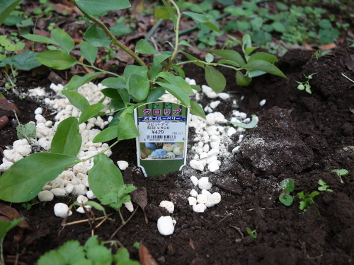 ブルーベリー コースタルの苗木の右側に地植えしました。