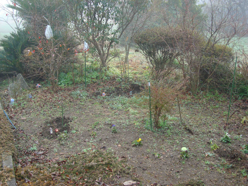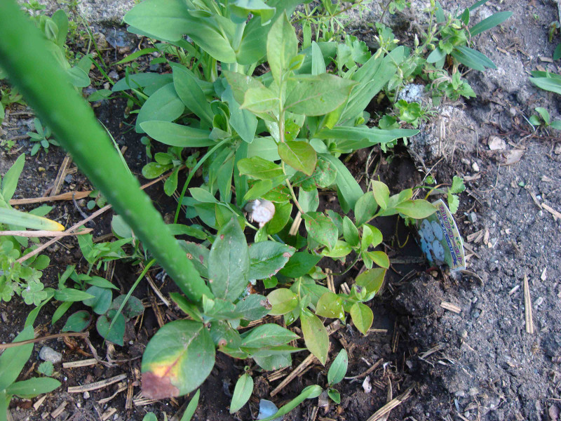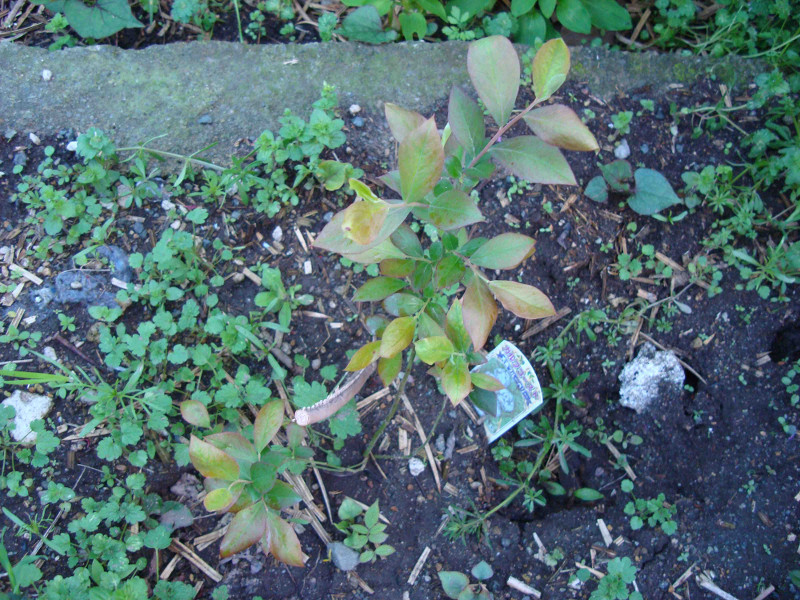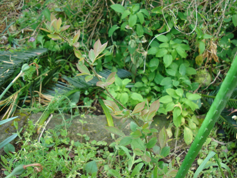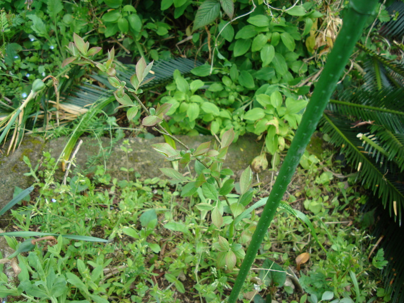 このあと2015年8月下旬頃に、弟に草刈り機で刈られてしまい、跡形もなくなりました。もともとサザンハイブッシュ系はノーザンハイブッシュ系(栽培適地:北海道〜関東北部)よりは暖かい地域でよく育つとは言われていますが、栽培適地は本州以北となっています。ということは九州は適地ではありません。私の植えている地域は九州南部とはいえ、冬の冷え込みは県内でも1〜2位でかなりのものなので、冬に耐えられなかった可能性もあります。寒冷地では枝に凍害が出るともいわれています(ラビットアイ系の栽培適地は、本州、四国、九州となっています)。また、ラビットアイ系よりも酸性土壌を好むといわれているので、結果的にラビットアイ系が良く育つ我が家の土には、同じ場所に混植したサザンハイブッシュ系は合わなかったのではないかと思います。