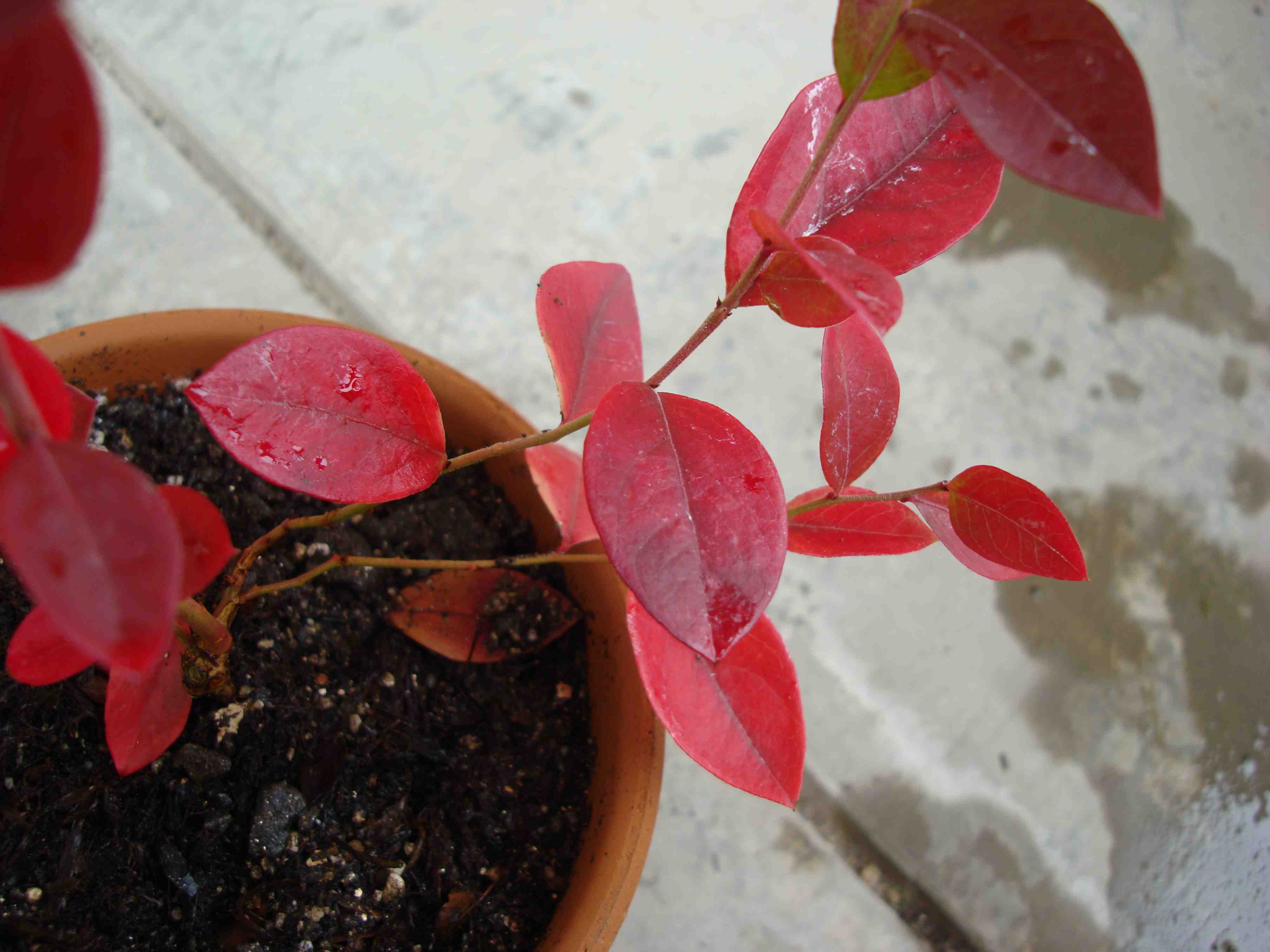 2012年11月17日(土)、近くのホームセンターに立ち寄ったら、ブルーベリーの苗木がとてもきれいに紅葉していました。あまりにも鮮やかに紅葉していたので、鑑賞しようと思い、ガルフコーストとミスティーという品種を1本ずつ買ってきました。