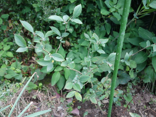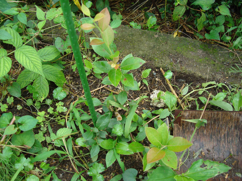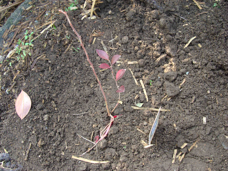 2013年6月30日(日)、草刈り機で切断されていたところからも新芽が出ていました。若干日蔭だからなのかわかりませんが、育ちが悪いです。これまでうちで栽培してきたブルーベリー(御三家と言われるラビットアイ系のティフブルー・ホームベル・ウッダード)はわりと栽培が簡単だと思ったのですが、今回のガルフコーストは、意外と難しいようです。結論を出すのはいささか性急ですが、サザンハイブッシュ系が合わないのかもしれません。
