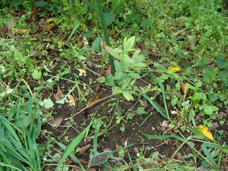 2013年2月2日に畑に植え替えました。2013年4月7日(日)、新しい葉っぱが出ていました。