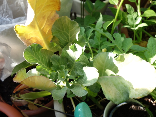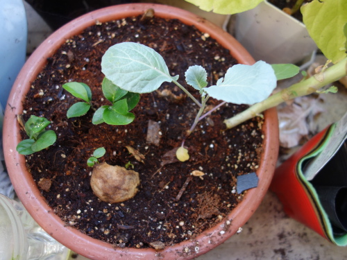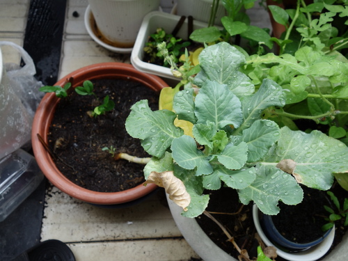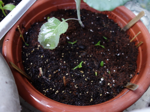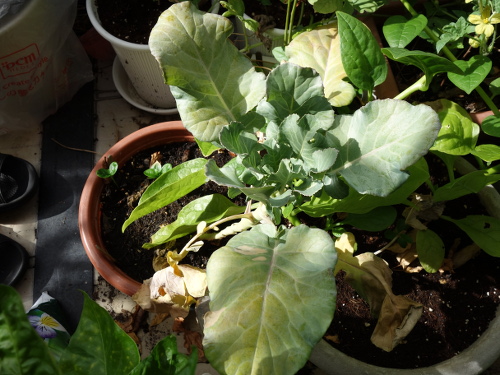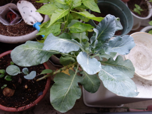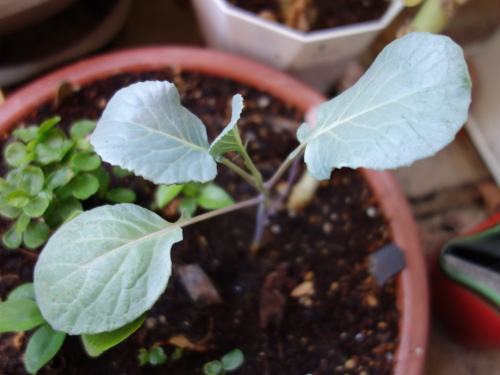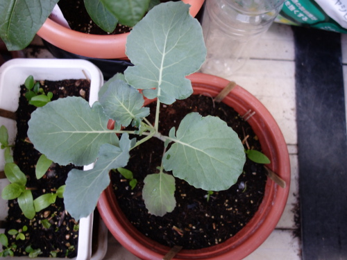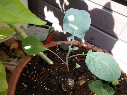 大きい葉っぱが落ちて小さい葉っぱだけになってしまいましたが、茎の先端に新しい葉っぱが出て来始めました。今、ちょうどホームセンターでブロッコリーの苗が売られている時期なので、この苗もこれから生長してくれると期待します。