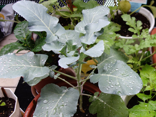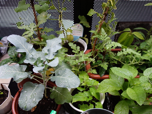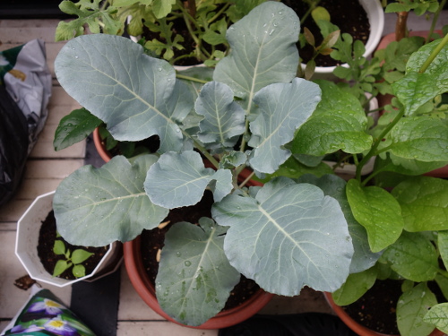 ツルムラサキ緑茎種の苗2本も移植しました。よって、この鉢にあるのはブロッコリーとプリッキーニの苗だけになりました。そのうちプリッキーニも別の鉢に移植する必要がありそうです。