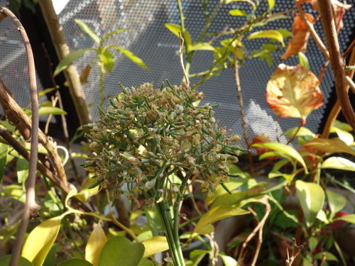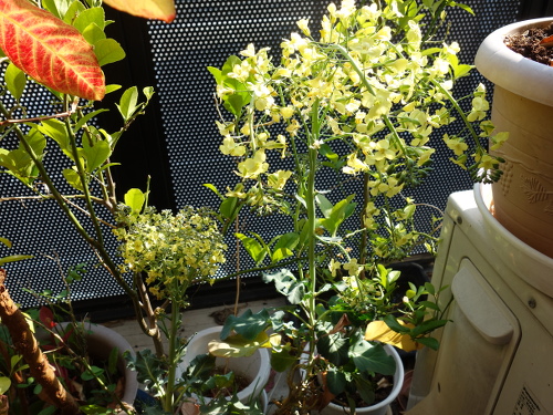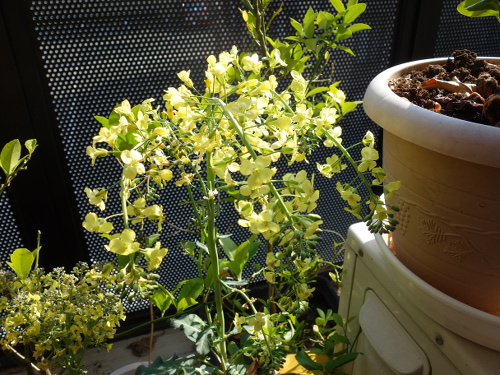 第三世代ブロッコリーの2本目と3本目の茎に咲いた花。3本目はこの2ヶ月近くでかなり成長しました。