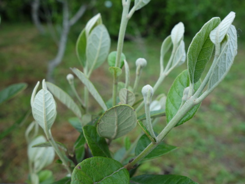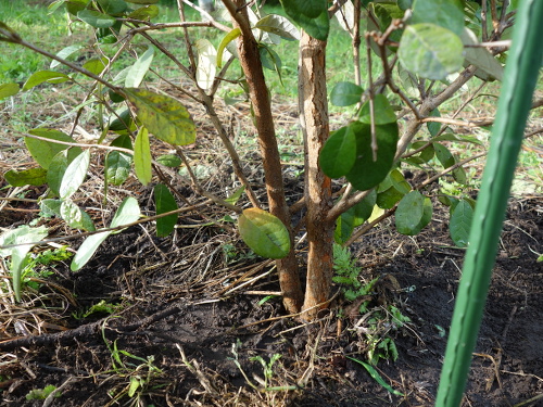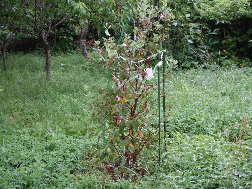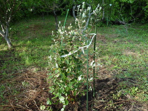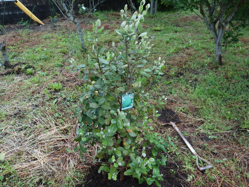トップページ > 果樹の栽培記録 > 蕾を持ったフェイジョアの苗木を買って来て植えました