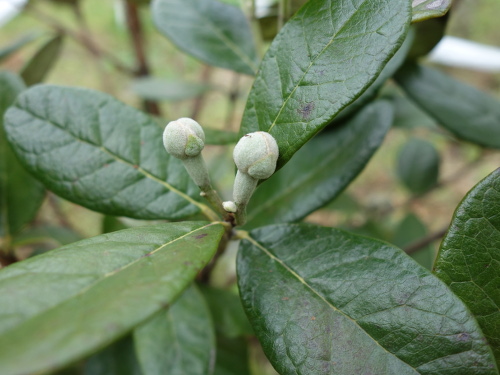 蕾を持ったフェイジョアの苗木を宮之城ちくりん館とどろ亭で買いました。
