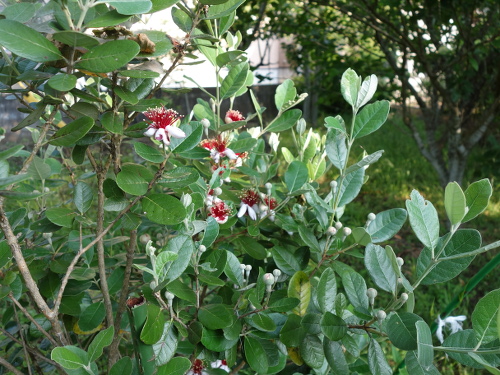 こちらのフェイジョアは花はたくさん咲きましたが、実が9月24日現在1個も生っていません。2017年に期待します。