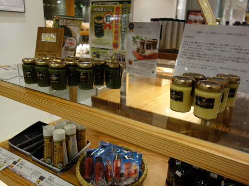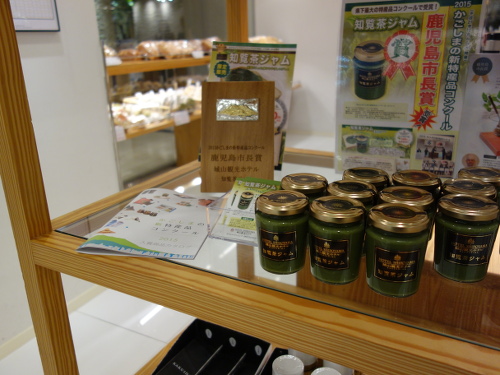 2015年11月22日(日)朝9:15に自宅を出て、10:30頃に着きました。駐車場に車をとめて、正面玄関から入り、しばらく直進すると、左手にパン屋さんがありました。そこの入ると、すぐに知覧茶ジャムが展示してあるのに気付きました。