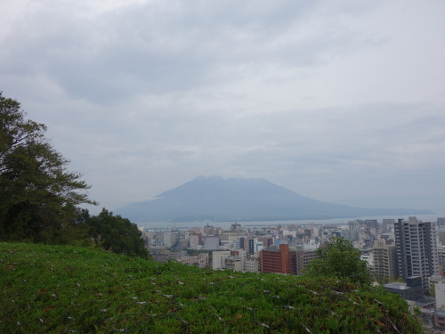 買ってから玄関を出て左側に歩くと桜島を一望できるところがありました。そのあと、天文館に行きました。照国神社のところの戊辰駐車場に車を止めて、歩いて天文館まで行きました。