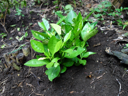 家の裏に植えました。クミアイの粒粒の肥料を土の中にまぶして植えました。しばらくは様子を見ます。