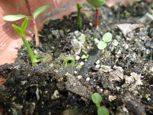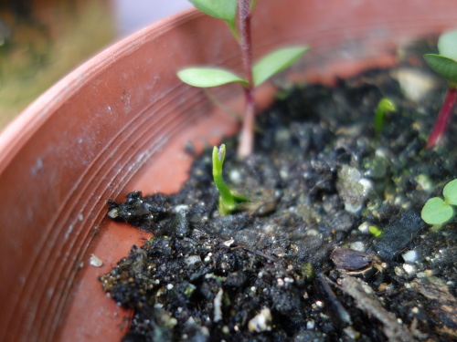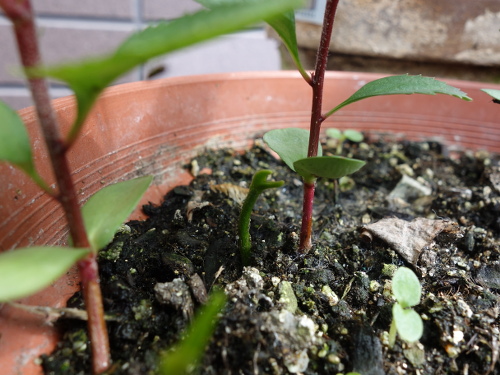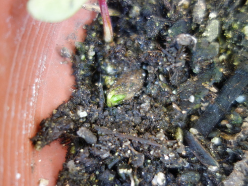 2015年4月18日に1本発芽しているのを発見しました。寒さに弱いのでこのまま育ったら冬は室内に入れることになります。