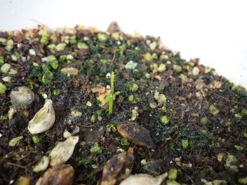 発芽して1ヶ月後のスダチの実生。手前は12月26日に気づいたシナノレッドの芽。発芽するのは年内ではなく、2016年春になると思われます。発芽の結果が出るまでは数ヶ月かかります。気長に待ちます。発芽したら暫くは育てますが、その先は未定です。まずは、発芽するかどうかを見ます。カボスにように実生に実が生るまでにとても長い年月がかかる例もありますので、その後のことは発芽してから考えることにします。