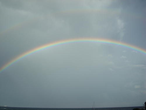 この虹は7:51頃に消えていきました。出現してから35分です。朝食時の僥倖のひとときでした。