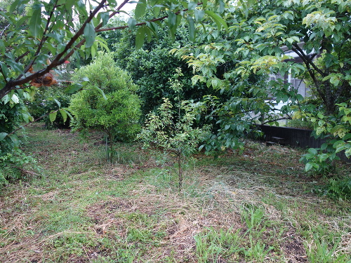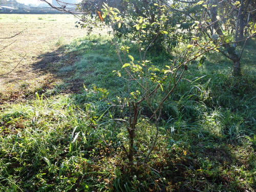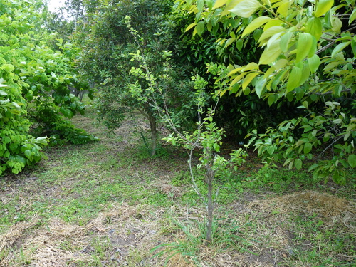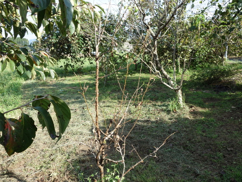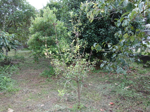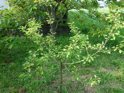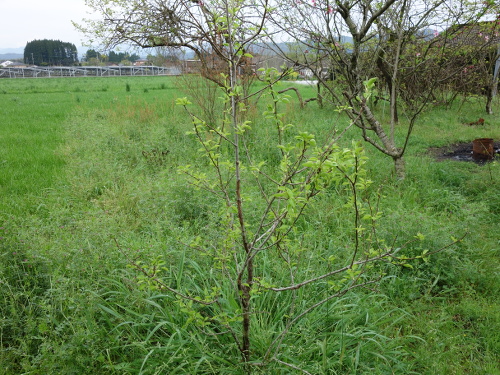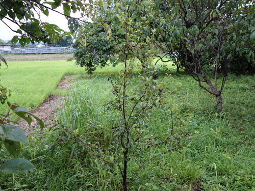 丈はそこそこ高くなってきましたが、無農薬でやっているので、だいぶテッポウムシが幹に入っている感じがあります。