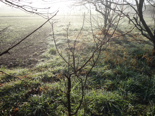 2012年11月18日(日)、実家に持って帰りました。1月2日に畑に植えました。実は少し大きくなりました。収穫できるかどうかはわかりませんが、一応袋がけしました。