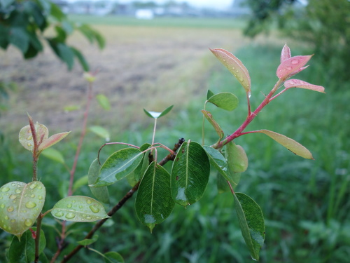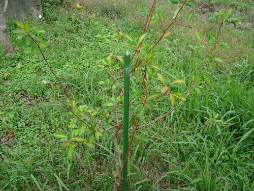 上に伸びたように見えます。これからの害虫シーズンを耐え抜いてほしいです。二十世紀梨と新高梨の木は無農薬で耐え抜いて育ったので、ラ・フランスもそのようになることを期待しています。