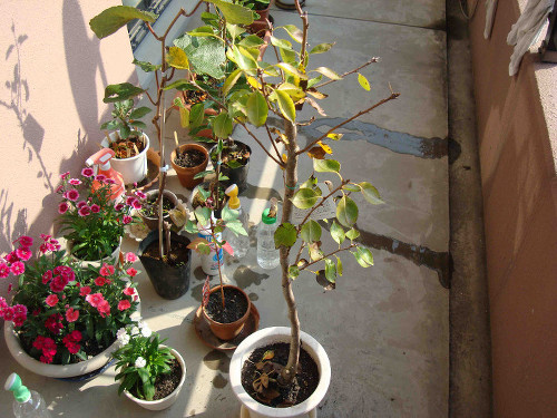上記の地植えのラ・フランスとは別に、2018年3月13日、近所のホームセンターにつぼみを持ったラ・フランスがあったので、その苗木を買ってきました。害虫の少ないベランダで鉢植えで栽培してみます。蕾を持ったル・レクチェもあったので同時に買ってきました。異品種同士で授粉樹になってくれることを期待したからです。そのためにはほぼ同時に花が咲いてくれなければなりませんが、ラ・フランスの方が若干早そうです。