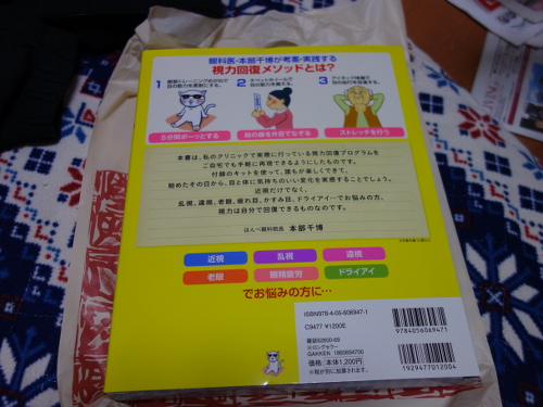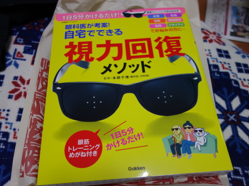 私自身のことを少し書きます。私は高校球児でした。ソフトボールも得意でした。外野を守っていても、打球はバットに当たった瞬間から良く見えていました。大学を卒業して修士課程を修了した24歳までは視力は2.0でした。野山の鳥も良く見えたし、水中メガネをかけて川に潜っても、ウナギやカニがどこにいるかもよく見えていました。しかし、社会人になって会社に入って、フーリエ変換赤外吸収スペクトル測定装置の自動化のプログラムを組む仕事を任され、その時から視力が低下し始めました。やっぱりパソコンというか、画面は目にはだめですね。視力が簡単に落ちていきました。それでも0.6ぐらいを保っていたのですが、あれから数十年、もう軽く0.1を切っています。おまけに近視と遠視も乱視も入ってきて、かなり苦しい感じです。コンタクトレンズはソフトしか合わなくて、しかも、コンタクトレンズを装着したら近くが見えないので本や新聞が読めません。要するに遠くは見えるけど、近くが見えません。なので書類も記入できません。普段はめがねをかけていて、近くを見る時はめがねを外してみています。こんな不自由な生活を送っていますが、最近、特に視力が弱った感じがしている中で、行きつけの書店でGakkenの「眼科医が考案!自宅でできる視力回復メソッド」を見つけました。でもすぐには買いませんでした。ずっと気になっていましたが、そんなに高くもないので試してみようと思い、2016年12月19日に買ってみました。眼科医・内科医である本部千博先生の監修によるもので、1200円+税でした。