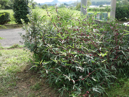 ローゼルの樹勢が強すぎて侵食されています。