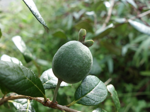 これは田浦町の道の駅に植えてあるフェイジョアの木に生った実です。こんなのが自分のフェイジョアにも生るはずと信じています。