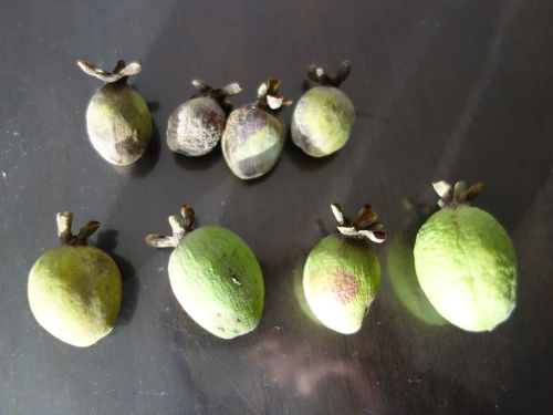 6個目のフェイジョアの果実は1枚目の写真の中の右端の1個です。
