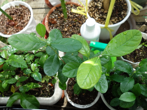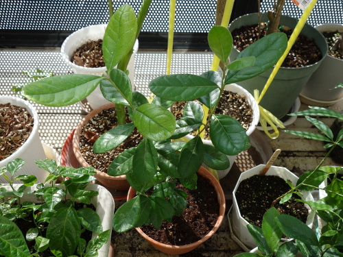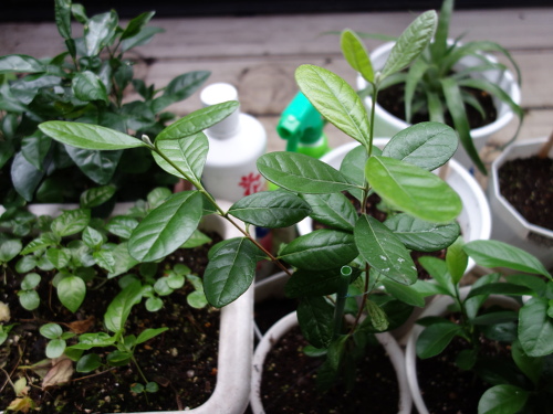 2本が3ヶ月前と比べてかなり生長しました。フェイジョアの実生苗は意外に枯れにくいので割と育てやすいようです。寒さにも強いです。