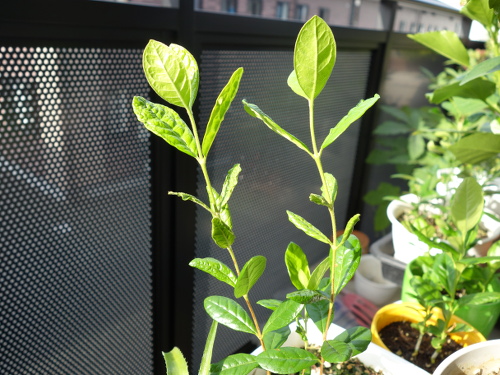 2017年9月3日現在、2本とも順調に生長しています。ただ、ベランダの猛暑には気をつけないといけません。室外機の上に置いていますが、これを下に下ろしたら熱にやられて葉っぱが落ちます。