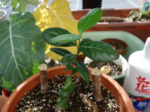 まわりにアボカドの実生苗もあって、だいぶ混み合ってきました。今後、アボカドの苗を分けるか処分する必要があります。