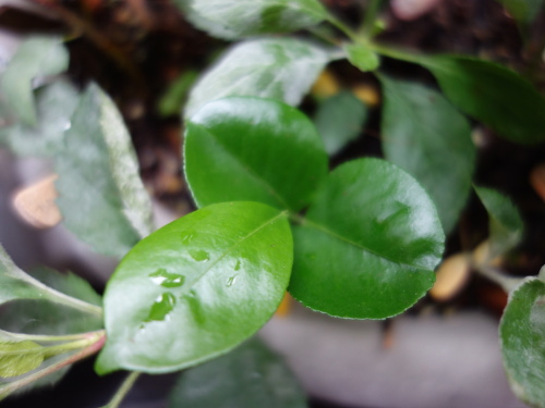 きれいな大きな葉っぱがついています。エカキムシにはやられていません。もう寒いのでこれからは食害はないでしょう。