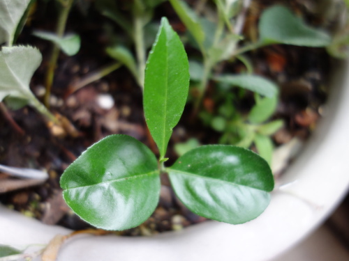 2016年5月6日現在、10本以上発芽して育っているのが確認できました。耐寒性がないので我が家の畑では植えることはできませんが、鉢植えで楽しむなら栽培可能といえます。晩白柚同様、発芽させて楽しむ自由研究には良いかもしれません