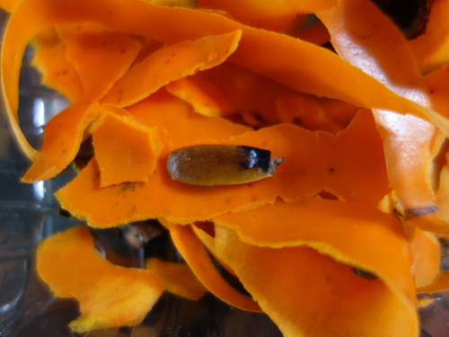 発芽しませんでした。これで追跡はやめます。果肉はマンゴーのように見えますが、味はマンゴーとは異なり、いわゆる柿の味がします。アルコールで脱渋してあるそうなので、入っていた種が発芽するか試してみたくなりました。それで、アップルキウイ、イエローストロベリーグァバ、シナノゴールド、あいかの香り、早生王林(ジャンボ王林)、秋映えりんごの種を蒔いたプランターの中央に蒔きました。かなりたくさんの種類の種を実験しているので、1つのプランターに7種類の種を蒔いたことになります。この富士柿、予想では発芽しないような気がしますが、来年の春には結果がわかるでしょう。