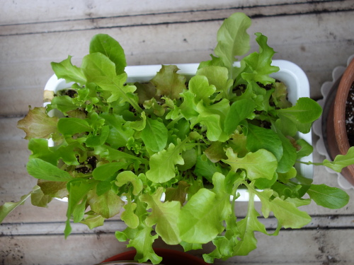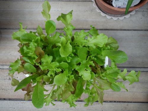 何度も摘みましたが、まだしばらくは食べられそうです。ガーデンレタスの花は咲かないのでしょうか。サラダ菜の花は咲いたことがあります。