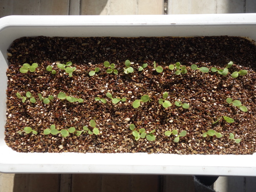 種を蒔いてからちょうど1ヶ月。葉っぱを夕方摘んで食べます。